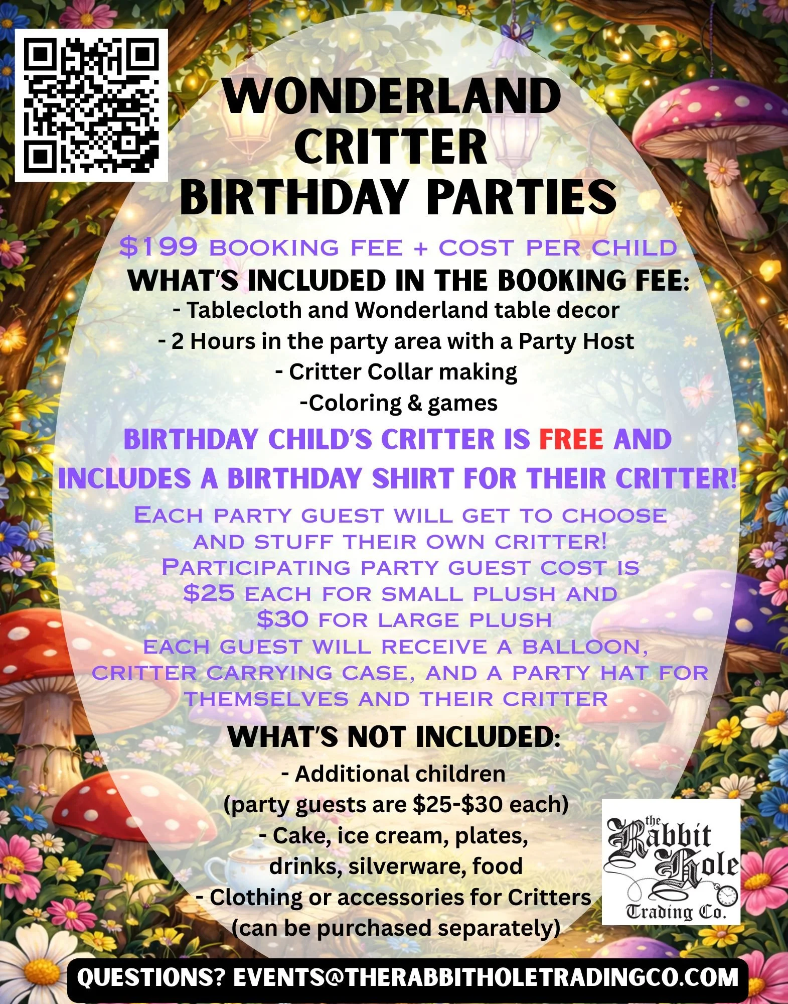 Want to have your birthday with the Wonderland Critters? Schedule your party below!